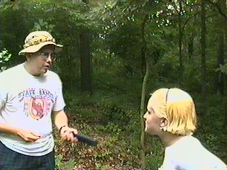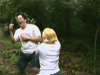Of course, there's no such thing as a happy ending. I had to tell the group that the dat was, in fact, not a dat, but a shotgun microphone. Thus, it ended. Chauncey was bludgeoned for telling everyone that the shotgun microphone was a dat, Briana was hung for telling us that a park was really the woods in which the "Blar Witch" lived, J. P. died from a lack of oxygen in the car, and I, unfortunately, fell over whilst taping in the woods and was picked off by a gun wielding hick. C'est la vie! |